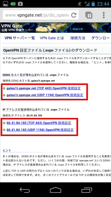 你也可以在你的电脑打开 公共 VPN 中继服务器列表页面,下载一个.ovpn 文件,在邮件里附上它发送到安卓。