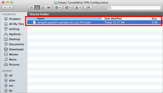 一个新的文件夹,"Empty Tunnelblick VPN Configuration", 将在桌面上创建。