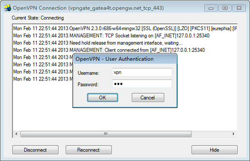 通过使用 OpenVPN 协议连接到 VPN Gate